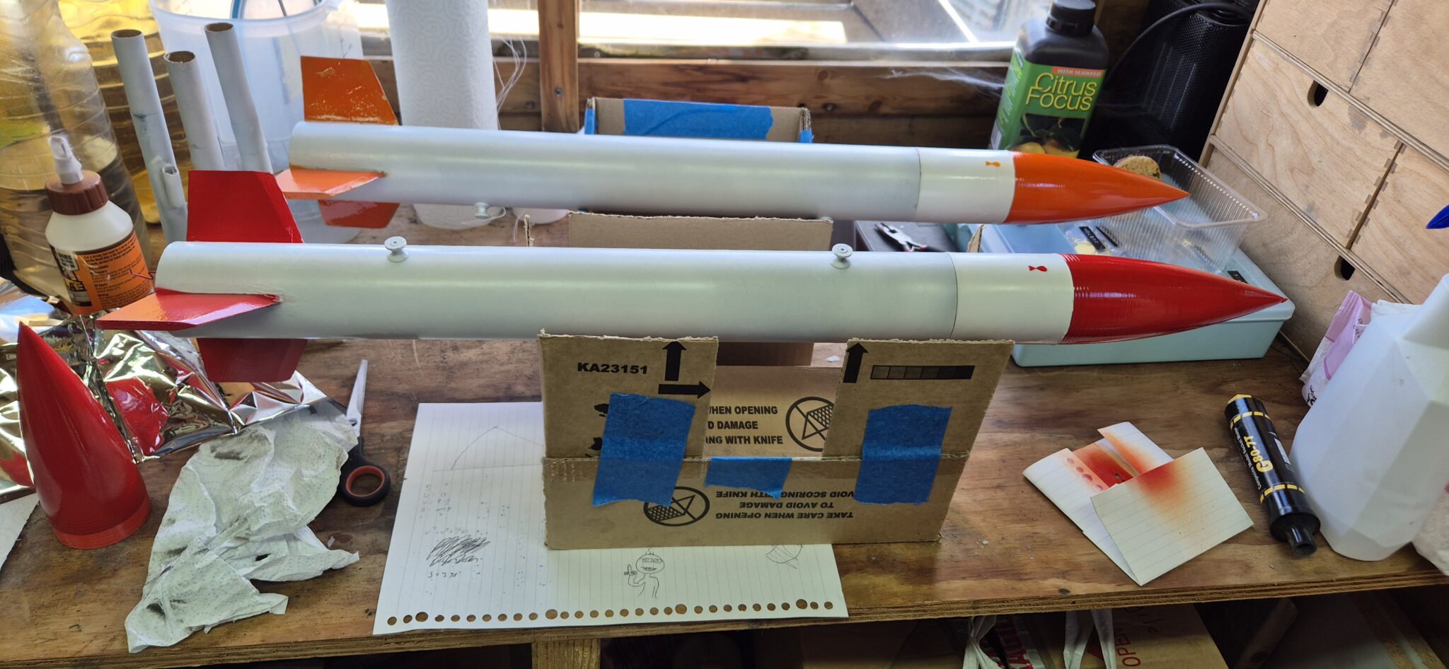 Since I was the only member with experience in Model Rocketry, I proposed that the project should be completed in two stages. 1) Each member would build a small rocket based on a design I had previously made and flown, to learn the theory of the rocket’s flight and how to construct a rocket. 2) Once every member had an understanding of a model rocket we would move onto the construction of two, larger, identical rockets which would serve as our competition entry (where one airframe would be our main aircraft, and the other would serve as backup in case of catastrophic failure).